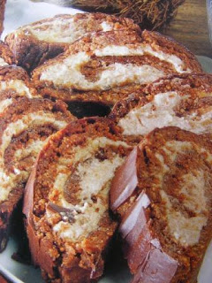 A kekszet ledaráljuk, majd a puha vajjal, a cukorral, a rummal, a kókuszreszelékkel meg a kakaóval összedolgozva félretesszük (de nem a hűtőbe!). A krémhez a gesztenyepórét burgonyanyomót áttörjük, és a puha vajjal, a cukorral, a rummal meg a kókuszreszelékkel összegyúrjuk. Egy tiszta konyharuhát megvizezünk, kiterítjük, és a kekszmassza felét vízbe mártott késsel elsimítjuk kb. 20 x 15 cm-es téglalappá. A gesztenyetöltelék felét rákenjük, majd a konyharuha segítségével felgöngyöljük. A másik tekercset is ugyanígy készítjük el, majd egy órára mindkettőt behűtjük. A tekercsek tetejét gőz felett megolvasztott csokoládéval bevonjuk. Közvetlenül tálalás előtt szeleteljük fel, s kínálhatjuk tejszínhabbal is.
