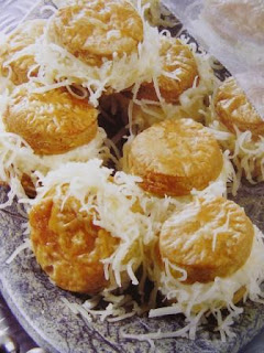 A töltelékhez a puha vajat keverd simára a krémsajttal, és annyi tejföllel, hogy jól kenhető, sűrű krémet kapj. Ízesítsd sóval, reszelt szerecsendióval. A krémmel tapassz össze 2-2 kis tésztakorongot, s forgasd meg őket reszelt sajtban.
